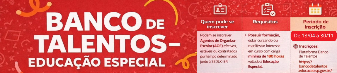 Banco de talentos educação especial EDITAL 002/2026 0 BANCO DE TALENTOS EDITAL PROCESSO SELETIVO AOE PARA EDUCAÇÃO ESPECIAL Modelo de edital – AOE – Banco de Talentos – Ed Especial – Unidade Escolar LINK PARA O BANCO DE TALENTOS – CADASTRE-SE